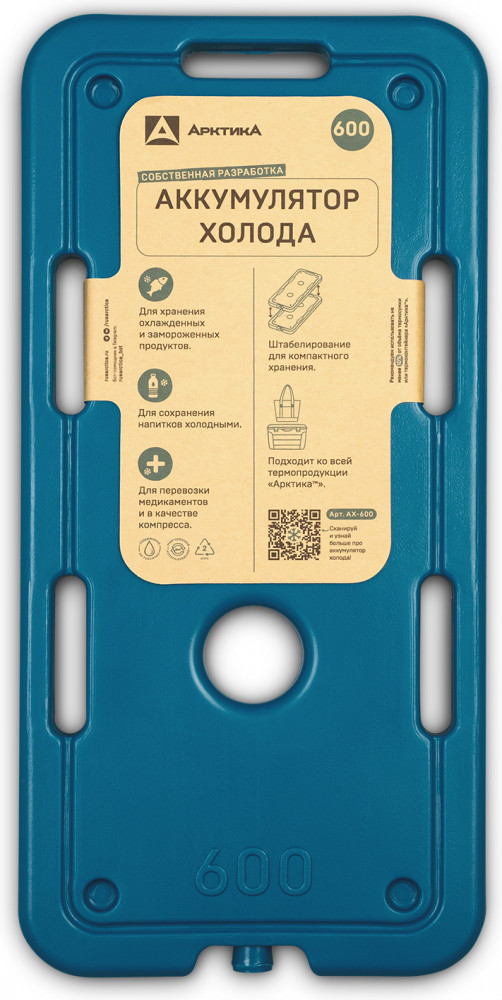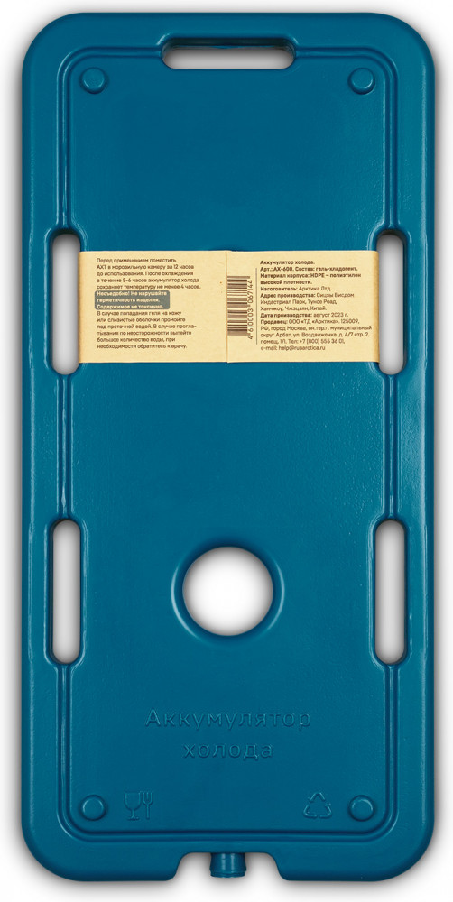 Специально разработан и протестирован новый формат аккумулятор холода, который идеально впишется в изотермику «Арктика». Он тоньше стандартного аккумулятора холода, что экономит место при хранении и использовании. Корпус оснащен специальными отверстиями, чтобы связать комплект при переноске. Не скользят при складывании друг на друга, благодаря специальным пазам.