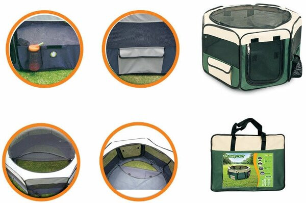 Triol Вольер-тентВ данный момент этот товар отсутствует в продаже. Возможно, у нас найдется аналогичный или похожий товар здесь. Удобный складной матерчатый вольер-тент — универсальное решение для владельцев собак. Его можно использовать как на улице, так и в помещении в качестве основного места для собаки. Незаменимым атрибутом дом-тент является для владельцев собак на выставках и при перевозке во время длительных путешествий. Дополнительная сетка (идет в комплекте) не дает возможности животному выбраться, а вшитая металлическая конструкция в разложенном виде крепко натягивает ткань, обеспечивая изделию максимальную устойчивость. Изделие имеет удобное отделение для поилки, съемная сетчатая крыша позволяет питомцу свободно дышать, а непромокаемое дно надежно фиксируется при помощи липучек и легко стирается в стиральной машине. |