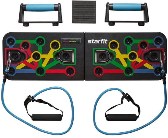 Starfit Тренажер мультифункциональныйВ данный момент этот товар отсутствует в продаже. Возможно, у нас найдется аналогичный или похожий товар здесь. Мультифункциональный тренажер STARFIT FD-101 – надежный помощник для проработки различных групп мышц. Компактный и интуитивно понятный, он поможет привести себя в форму, усилить воздействие на конкретные зоны, а также улучшить показатели силы и выносливости. Основание тренажера выполнено из качественного и прочного пластика, выдерживающего нагрузку до 100 килограмм. В комплект также входят специальные наклейки из ЭВА. С ними тренажер не будет скользить по полу, а напольное покрытие не повредится. Закругленные края платформы делают тренировки безопаснее и комфортнее: спортсмен не травмируется об острые углы. Тренажер помогает выполнить множество упражнений с упорами и эспандерами, которые входят в комплект. Установка не занимает много времени, а цветные индикаторы, расположенные на платформе, позволяют с легкостью определиться с размещением дополнительного инвентаря. Чтобы поставить упоры в нужное место, достаточно разместить их в соответствии с цветными отметками на поверхности тренажера. В набор также входят эспандеры длиной 80 сантиметров, изготовленные из долговечного ТПР. Они крепятся с помощью карабинов к прочным металлическим дужкам, расположенным симметрично в 4 местах на платформе. Ручки эспандеров покрыты приятным к коже неопреном, который поможет избежать образования мозолей при регулярных занятиях. |