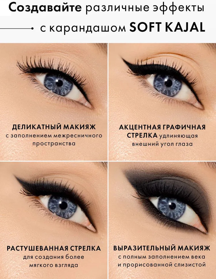 Каял понравился, насыщенный черный цвет, стойкий, хорошо растушевывается, использую для стрелок и межриснички