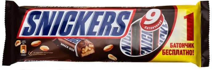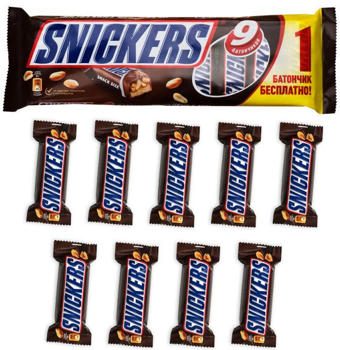 Батончик шоколадный, Snickers — сладость, которую можно взять с собой в дорогу и вкусно зарядиться энергией! В упаковке 9 батончиков с жареным арахисом, нугой, карамелью и молочным шоколадом. Идеален вместе с чаем или кофе. Поделитесь с друзьями, семьёй или коллегами! |
