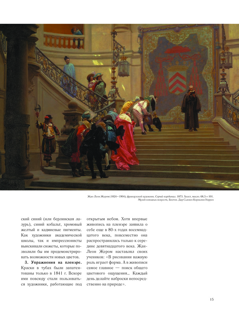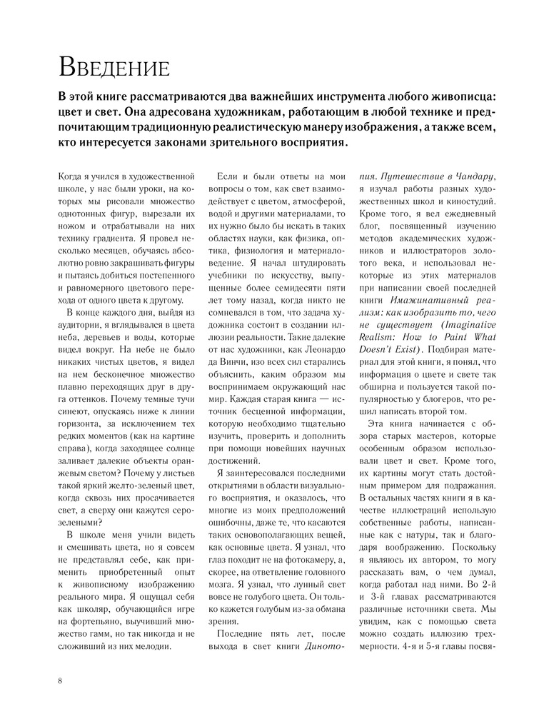 Книга толстенькая, с плотными страницами, множеством иллюстраций. Это не пошаговые уроки, а сборник знаний автора, помогающий достичь более реалистичного изображения. Иллюстрации качественные по содержанию, профессиональные, приводятся малоизвестные у нас работы американских художников. В книге рассматриваются тонкости и полезности вроде того, как влияют изображаемые погодные условия на цвет картины, различное освещение, светостойкость красок, изображение фактуры поверхностей и т.д. В общем, кратко описываются те вопросы, которые возникают при попытке реалистично изобразить какой-либо сюжет. Полезно будет тем, кто уже рисует, как сборник полезных советов и тем, кто начинает рисовать, поможет делать правильно первые шаги в живописи.