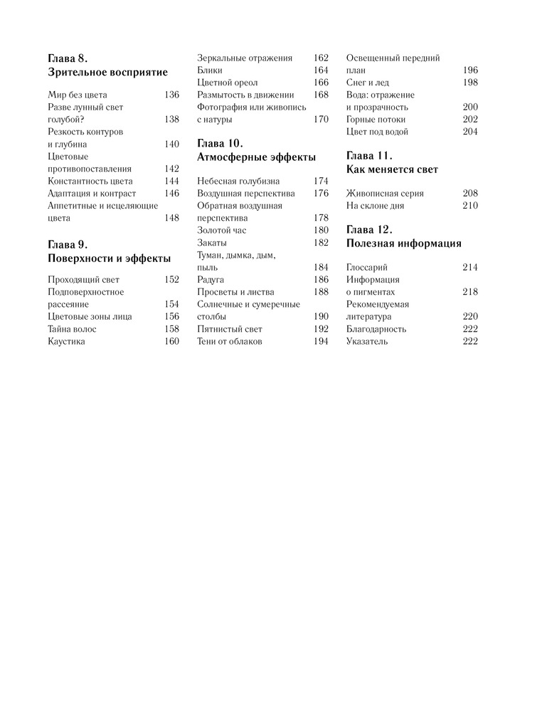 Очень понравилась книга. Позволяет систематизировать уже имеющиеся знания, да и узнала много нового о свойствах красок, влиянии породных условий на свет и пр. Меня книга подтолкнула к изучению свойств предметов перед рисованием, наблюдению.