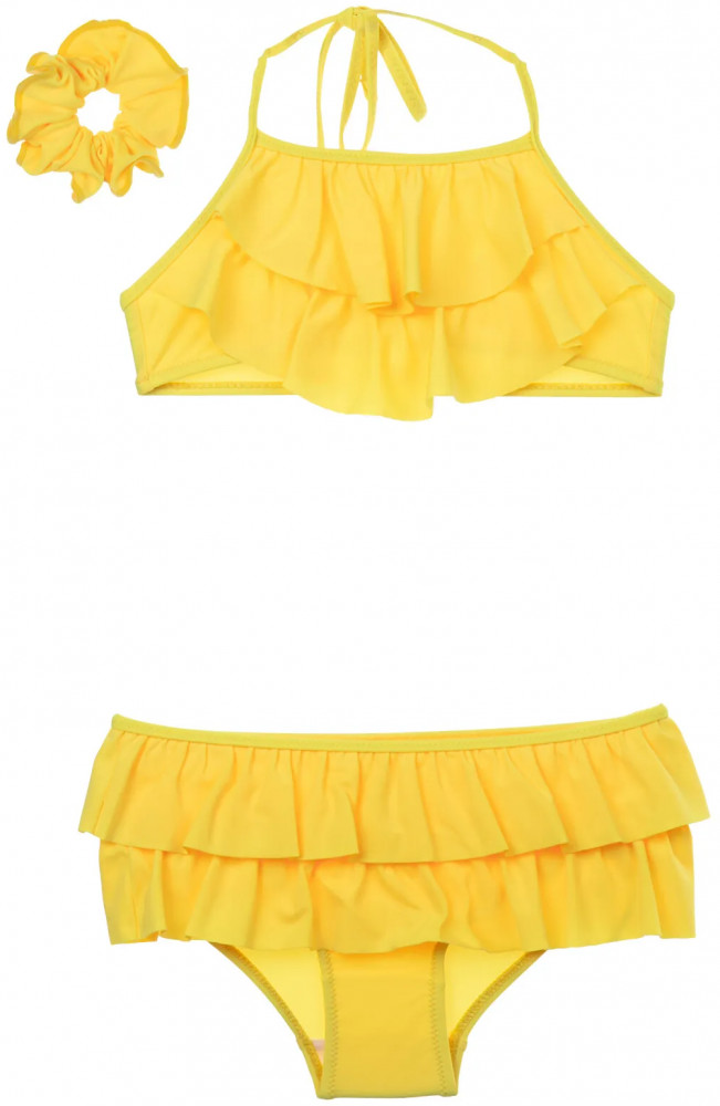 Купальник раздельный, резинка для волос в тон. Быстросохнущий материал. Благодаря UF-защите, ткань сохраняет первоначальный вид даже при длительном пребывании на солнце.