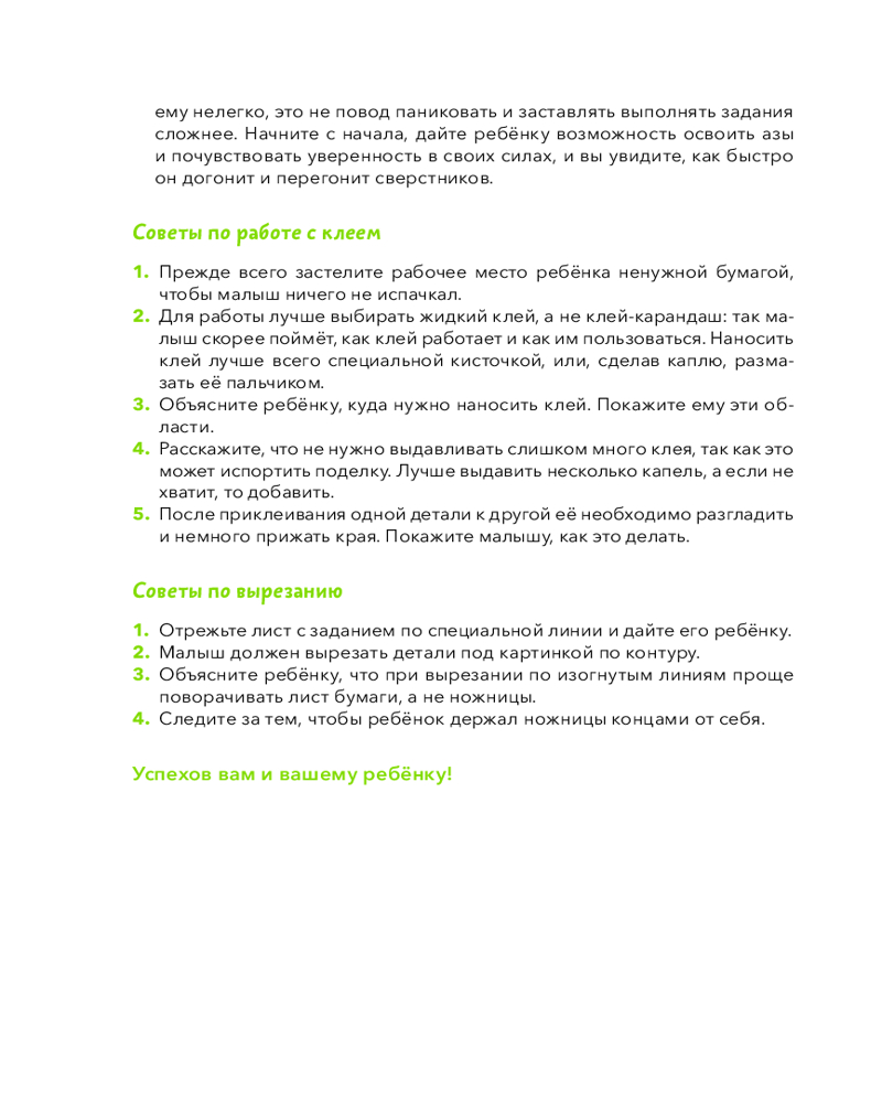 💳 Оплатить за товар можно при получении 🇰🇿 Есть бесплатная доставка по Казахстану от 1 дня 🎁 Копите бонусы с каждой покупки Серия: Чевостик. Первые навыки малыша Благодаря тетради «Учимся клеить» ребёнок научится аккуратно приклеивать на страницу фигуры разной формы на отмеченную область, склеивать картинки, точно совмещая линии, и делать простые аппликации. Для работы с тетрадью необходимо уметь вырезать, но если ваш малыш пока не освоил этот навык, вы можете помогать ему вырезать детали. |