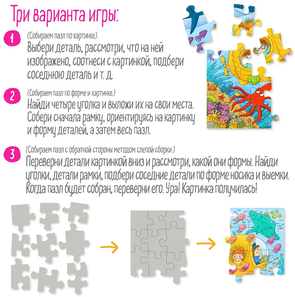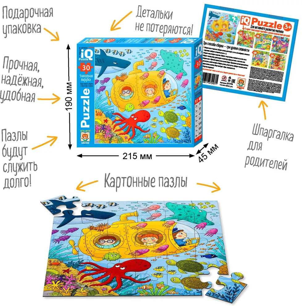 💳 Оплатить за товар можно при получении 🇰🇿 Есть бесплатная доставка по Казахстану от 1 дня 🎁 Копите бонусы с каждой покупки Серия: IQ пазлы картонные Пазл с изображением подводного мира состоит из 30 элементов. Размер картинки 32×32 см. Материал идеально подходит для детских ручек. Большие детали выполнены из плотного толстого картона. Благодаря этому они ровно лежат, замки легко соединяются и хорошо держатся. По тактильным ощущениям малыш сразу понимает, правильно ли он собрал пазл. |