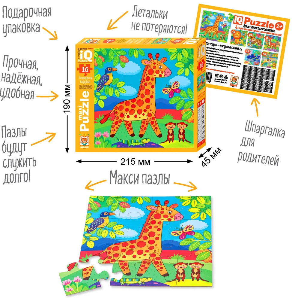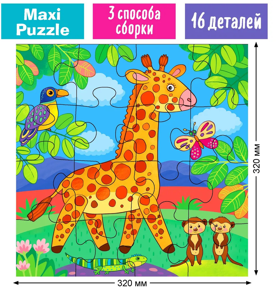 💳 Оплатить за товар можно при получении 🇰🇿 Есть бесплатная доставка по Казахстану от 1 дня 🎁 Копите бонусы с каждой покупки Серия: IQ пазлы картонные Пазл с изображением животных Африки состоит из 16 элементов. Размер картинки 32×32 см. Большие детали не имеют опасных острых углов и выполнены из плотного толстого картона. Благодаря этому они ровно лежат, замки легко соединяются и хорошо держатся. По тактильным ощущениям малыш сразу понимает, правильно ли он собрал пазл. Размер и содержание картинок соответствуют возрасту ребёнка. Чёткие, яркие, лаконичные изображения с добрыми героями подобраны с учётом детского восприятия. Детали высечены уникальным штампом — каждая деталь имеет свою форму и встаёт только на своё место. Это позволяет собирать пазл с оборота, без опоры на картинку (метод слепой сборки). Такой способ особенно важен для развития ребёнка. |