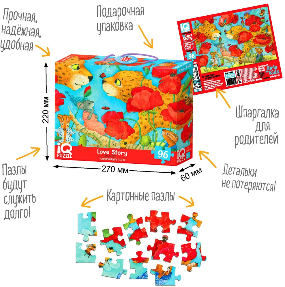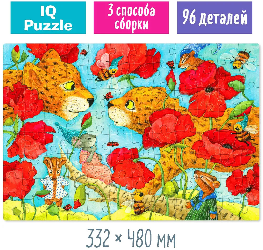 💳 Оплатить за товар можно при получении 🇰🇿 Есть бесплатная доставка по Казахстану от 1 дня 🎁 Копите бонусы с каждой покупки Серия: IQ пазлы картонные Увлекательная головоломка и игра на внимание в подарочном сундучке. Яркая картинка с изображением леопардов среди цветущих маков собирается из 96 деталей. Элементы пазла выполнены из плотного кашированного картона. Каждая деталь имеет уникальную вырубку, благодаря чему пазл можно собирать с обратной стороны (методом слепой сборки). |