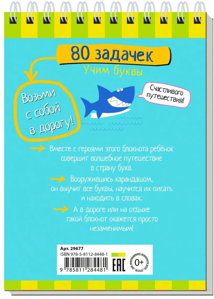 💳 Оплатить за товар можно при получении 🇰🇿 Есть бесплатная доставка по Казахстану от 1 дня 🎁 Копите бонусы с каждой покупки Серия: Умный блокнот Открыв этот блокнот, ребёнок попадёт в волшебную страну букв. Здесь он познакомится с буквами, научится их писать и находить в словах, выучит алфавит. Путешествие будет весёлым и интересным, ведь предстоит пройти по запутанным лабиринтам и поиграть с буквами в прятки. В дороге или на отдыхе такой блокнот будет просто незаменим. |