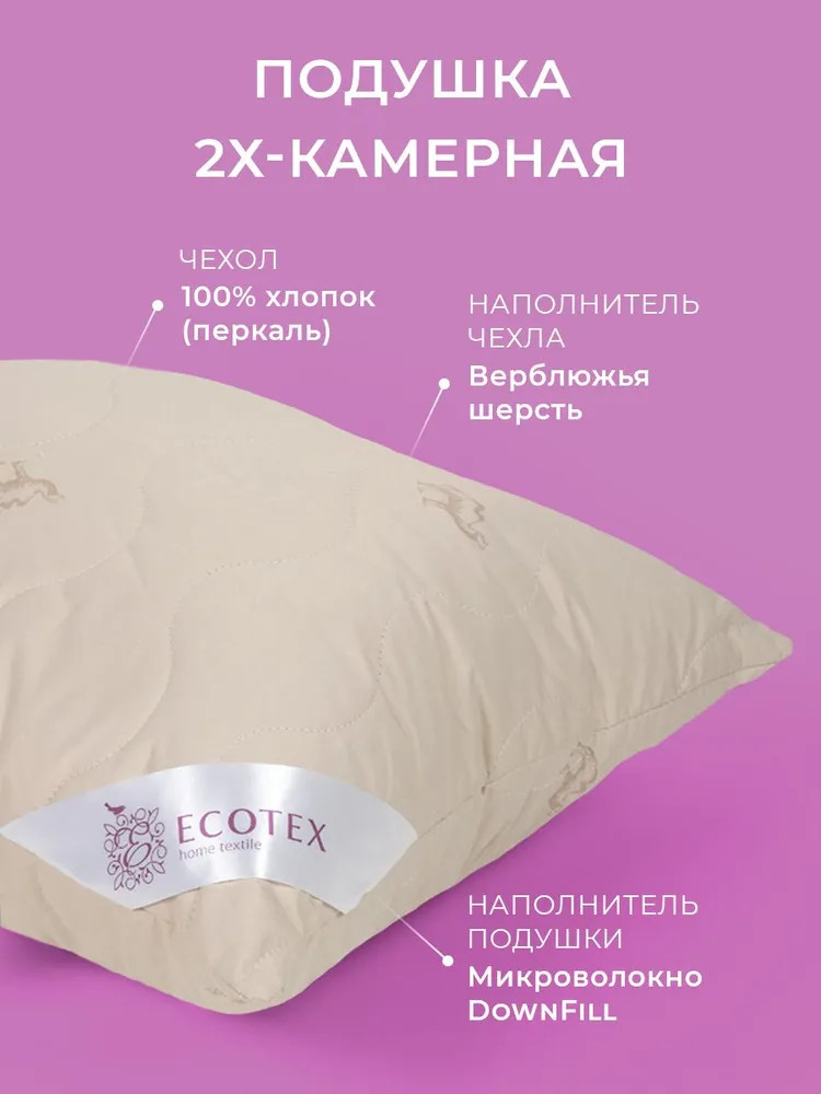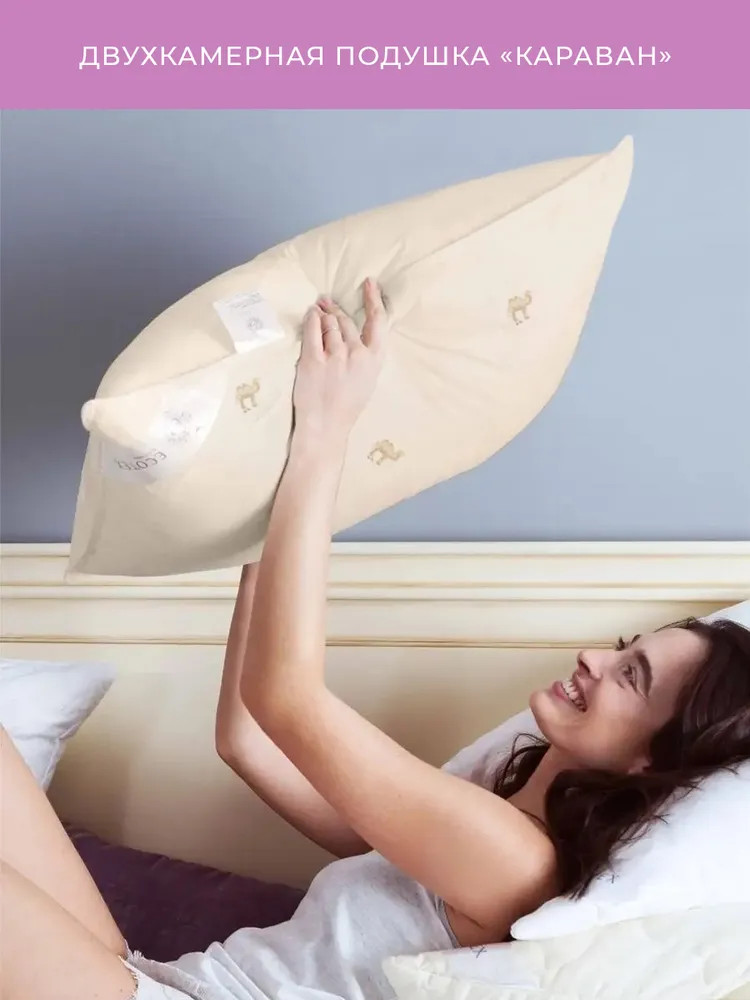 Ищите максимально качественное решение в выборе подушки? Хотите приобрести изделие, которое подарит вам волшебный караван снов? Качественная подушка «Караван» от производителя компании «Ecotex» из чудодейственной верблюжьей шерсти в хлопковой ткани тик — лучший выбор для всей семьи! Она обеспечивает хорошую поддержку шеи и головы во время сна, практична, экологична и комфортна. Качество и технологические инновации добавляют изделиям этой коллекции благородство и дарят упоительный сон.
