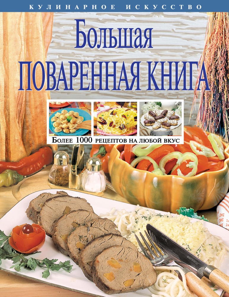 Большая поваренная книга: Более 1000 рецептов на любой вкусВ данный момент этот товар отсутствует в продаже. Возможно, у нас найдется аналогичный или похожий товар здесь. Серия: Кулинарное искусство В "Большой поваренной книге" содержится более 1000 рецептов разнообразных блюд, которые составят основу как ваших завтраков, обедов и ужинов, так и праздничных застолий. Подробные рецепты самых различных блюд даны с учетом важнейших нюансов процесса их приготовления. Ведь порой мелочь существенно влияет на вкус и пищевую ценность готового кулинарного шедевра. В книге приводятся интересные и полезные сведения о питательной ценности различных продуктов, здесь же вы найдете полезные советы, с помощью которых можно избежать ряда серьезных ошибок, наиболее часто встречающихся в кулинарии. Благодаря рецептам и советам этой книги вы избежите утомительного однообразия вашего стола, а ваша пища станет потрясающе вкусной, питательной и полезной. |