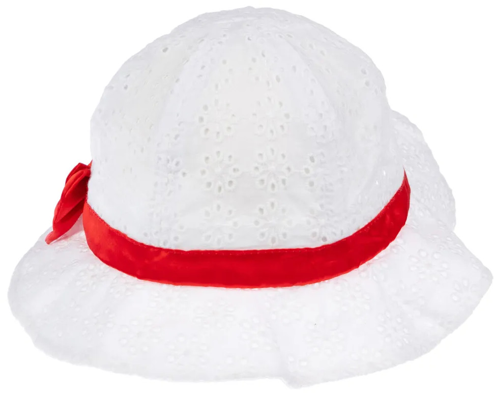 Удобная панама. Есть завязочки. Красный бантик - отличное украшение панамы.