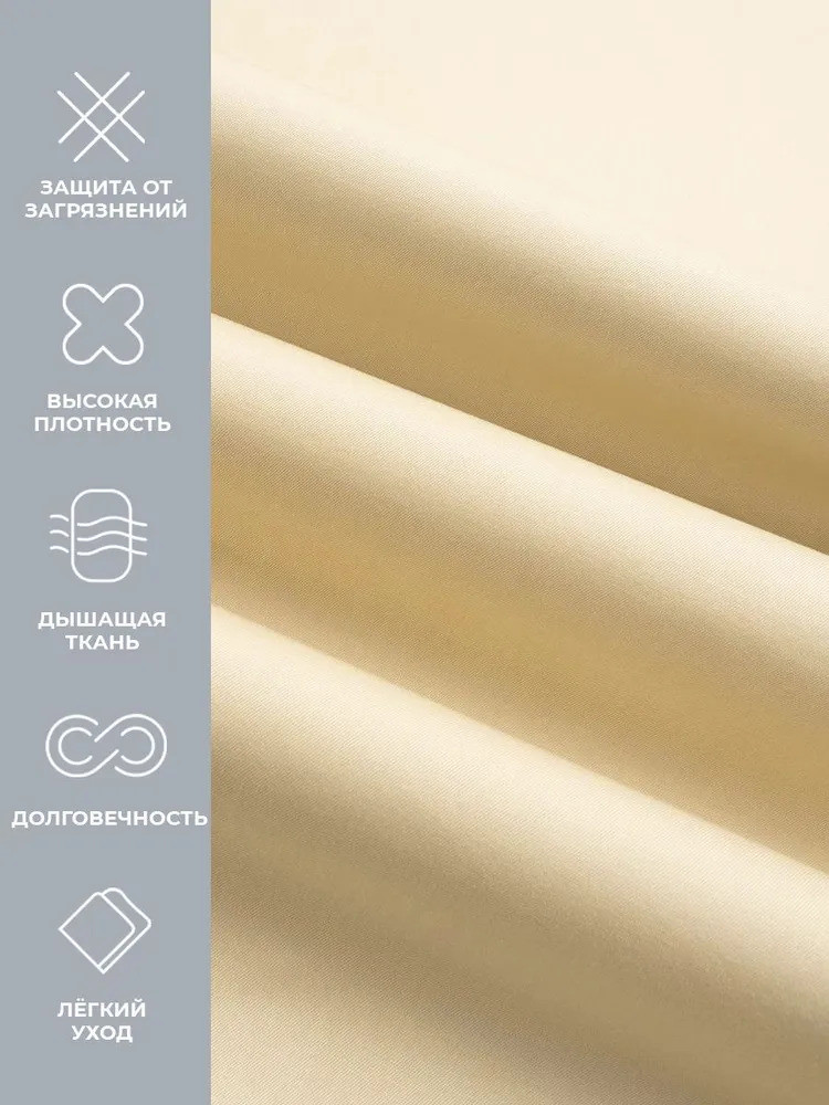Сатин отличного качества. После стирки не садится. Прекрасно подошёл на кровать 160/ 200/20