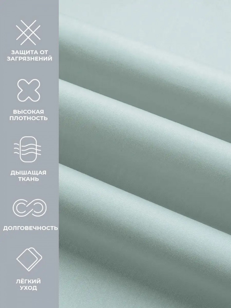 Сатин отличного качества. После стирки не садится. Прекрасно подошёл на кровать 160/ 200/20
