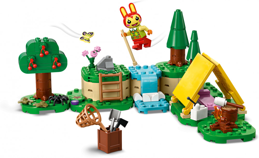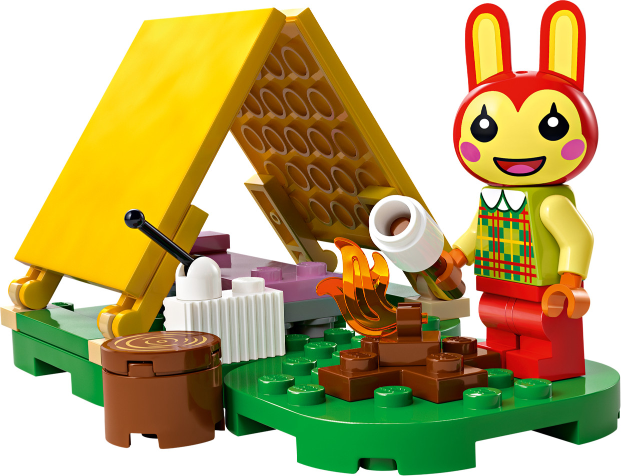 Серия: LEGO Animal Crossing Проявите свою креативность, помогая Банни обустроить ее лагерь. Усадите ее в палатке, затем возьмите инструменты и отправляйтесь на разведку. Используйте шест, чтобы перепрыгнуть через реку. Обыщите дерево, чтобы увидеть, какой сюрприз оно таит. Вечером устройтесь поудобнее у костра и поджарьте зефир. Затем переставьте опорные пластины, чтобы придать набору совершенно новый вид!