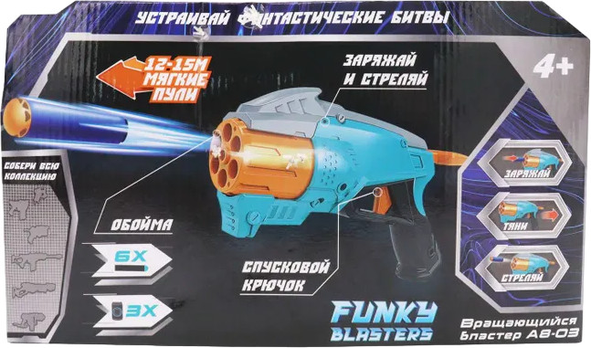 Funky Toys Набор игровой «Бластер вращающийся АВ-03»В данный момент этот товар отсутствует в продаже. Возможно, у нас найдется аналогичный или похожий товар здесь. Серия: Funky blasters Стильный и функциональный вращающийся бластер АВ-03 бирюзового цвета для детей от Funky Toys — прекрасная игрушка для активных, сюжетно-ролевых, командных игр. Патроны выполнены из мягкого материала и не навредят ребенку. Реалистичное игрушечное оружие: в конструкции бластера предусмотрен спусковой крючок и крутящийся барабан для патронов. Чтобы начать перестрелку, зарядите оружие, нажмите на спусковой крючок и стреляйте! Дальность стрельбы достигает 12-15 метров. Игрушечные пистолеты прочные и точные, имеют уникальный дизайн и презентабельную упаковку. Соберите весь арсенал Funky Blasters и устраивайте фантастические битвы! |