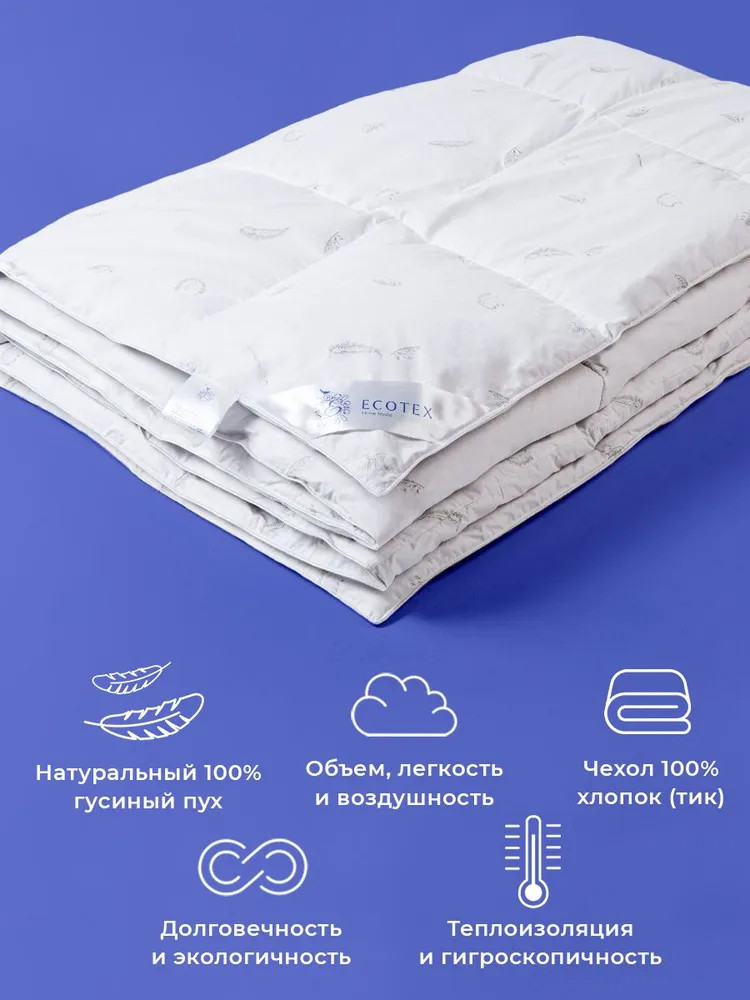 Одеяло хорошее. Наполнитель гусиный пух, а не меринос. Смените описание