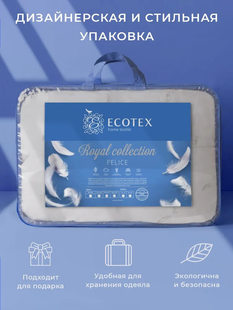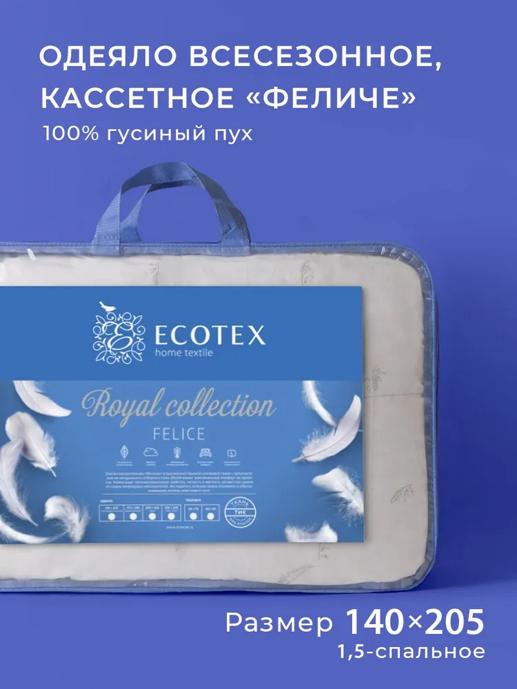 Качественное одеяло от российского производителя «Ecotex», в чьи спасительные объятия мы падаем каждую ночь, теплое, легкое, как пушинка, окутывающее Вас, словно нежное облако — это не роскошь, а обязательное условие хорошего сна. Коллекция кассетных одеял «Феличе» — это традиционный комфорт в высококачественном исполнении на собственном высокотехнологичном производстве.