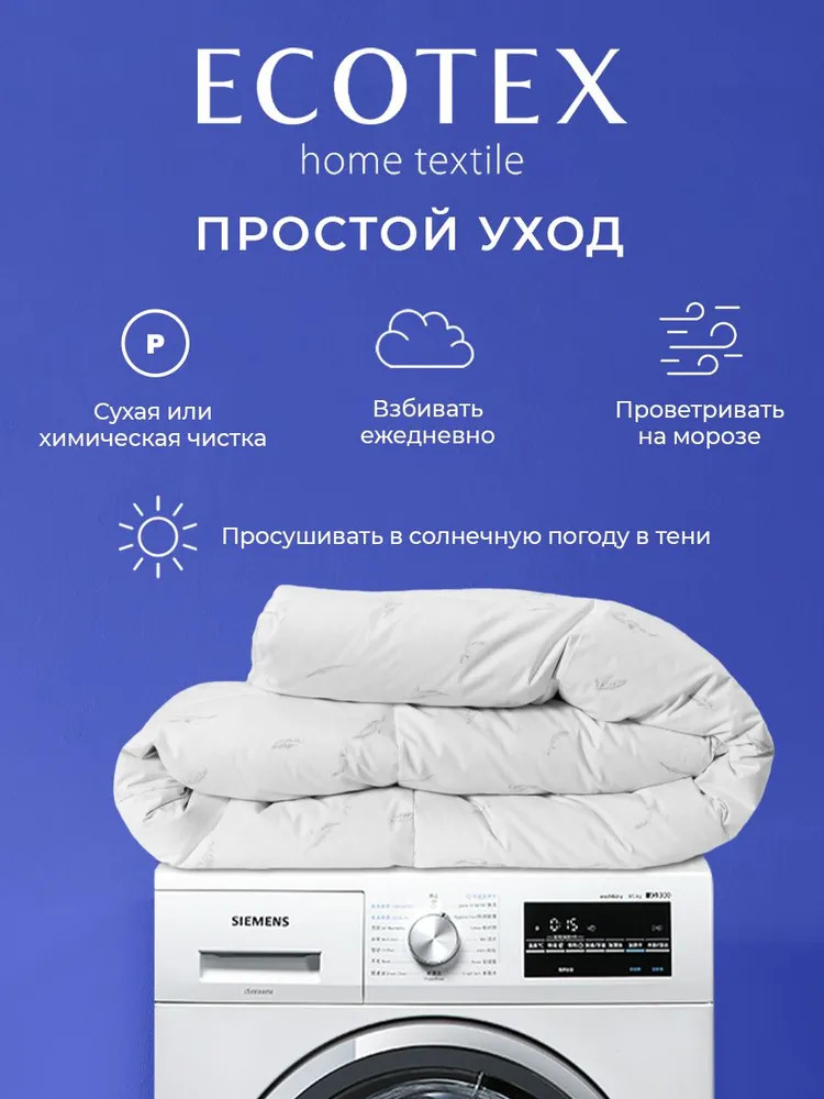 Пуховое одеяло от Ecotex выполнено из 100% гусиного пуха категории «Люкс», что дарит ему невероятную легкость и воздушность, а чехол — из тика — натурального хлопкового материала. За счет кассетной структуры наполнитель остается на своем месте, что помогает поддерживать постоянную пышность изделия.