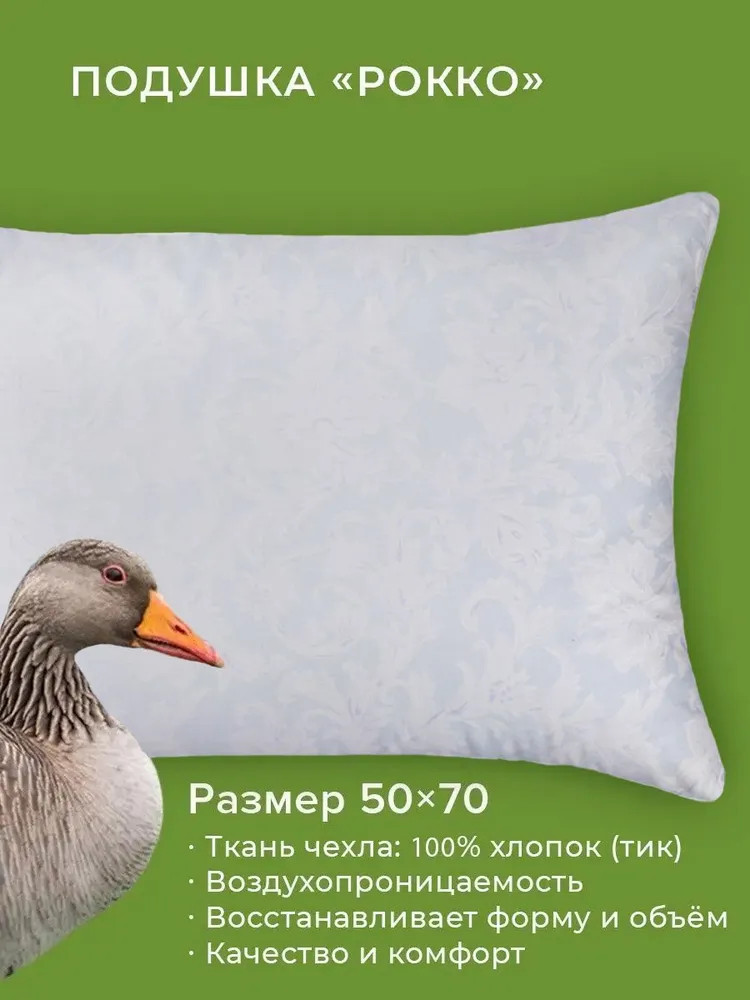 Подушка «Рокко» — это обязательное условие хорошего сна и традиционный комфорт в качественном исполнении. Удобные пуховые подушки, воздушные, нежные, взбитые в легкое облако, дарят удовольствие от их пышности и мягкости во время сна. Если Вы хотите купить оптом качественную перопуховую подушку от производителя, обратите внимание на чехол. Высококачественный плотный чехол подушки из тика надежно удерживает наполнитель внутри изделия, не дает ему деформироваться, увеличивая срок службы. Благодаря специальной обработке, промывке и стерилизации, наши пуховые подушки гигиеничны и экологичны.