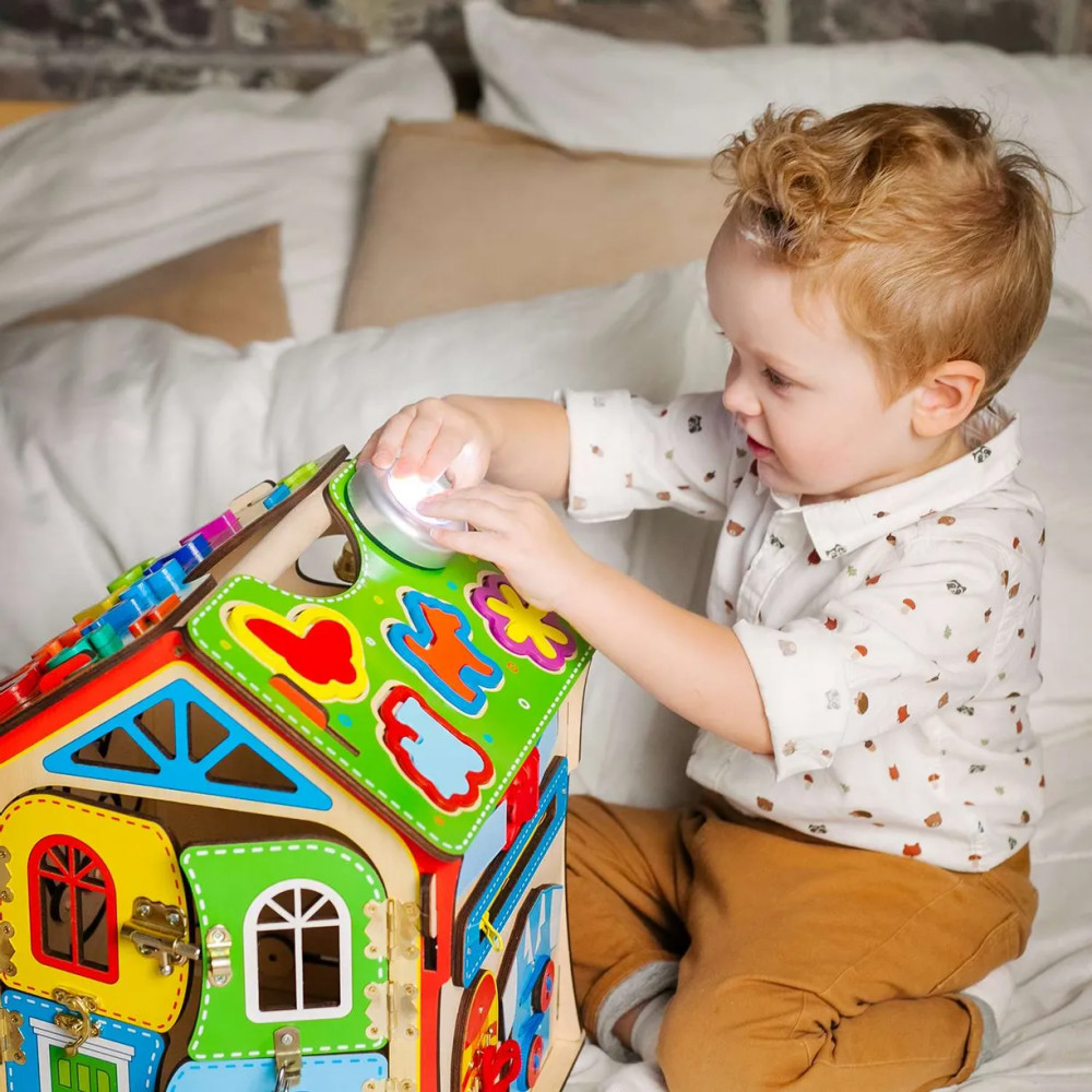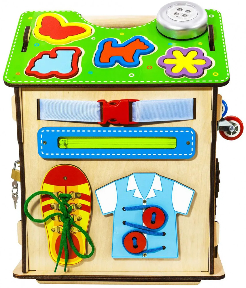 Alatoys Бизиборд «Бизидом»В данный момент этот товар отсутствует в продаже. Возможно, у нас найдется аналогичный или похожий товар здесь. Бизидом представляет собой конструкцию, выполненную в виде дома. Каждая сторона дома, в том числе и крыша, наполнена деталями различного функционала. Модули бизидома привлекают детей своей яркостью и необычностью. Играя с различными элементами Бизидома, малыш получает новые бытовые навыки, развивает мелкую моторику, зрительно-моторную координацию, а также логическое мышление. |