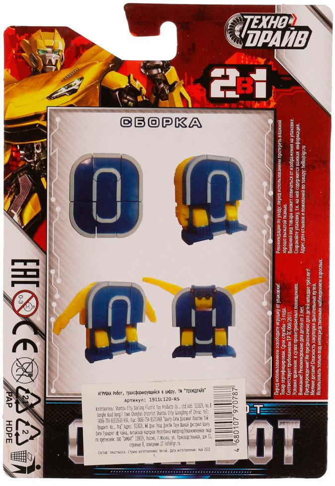Технодрайв Робот-трансформер «Цифра 0»В данный момент этот товар отсутствует в продаже. Возможно, у нас найдется аналогичный или похожий товар здесь. Серия: Супербот Этот яркий робот непременно понравится юному герою. Вместе с ним можно отправиться на спецзадание, спасти мир, стоять на страже правопорядка и придумать еще много сюжетов для занимательных игр. Ребёнок может играть с ним как с роботом, так и знакомиться с основами счёта. Игра с трансформирующимся роботом развивает фантазию, моторику, пространственно-образное мышление, логику, интеллект. |