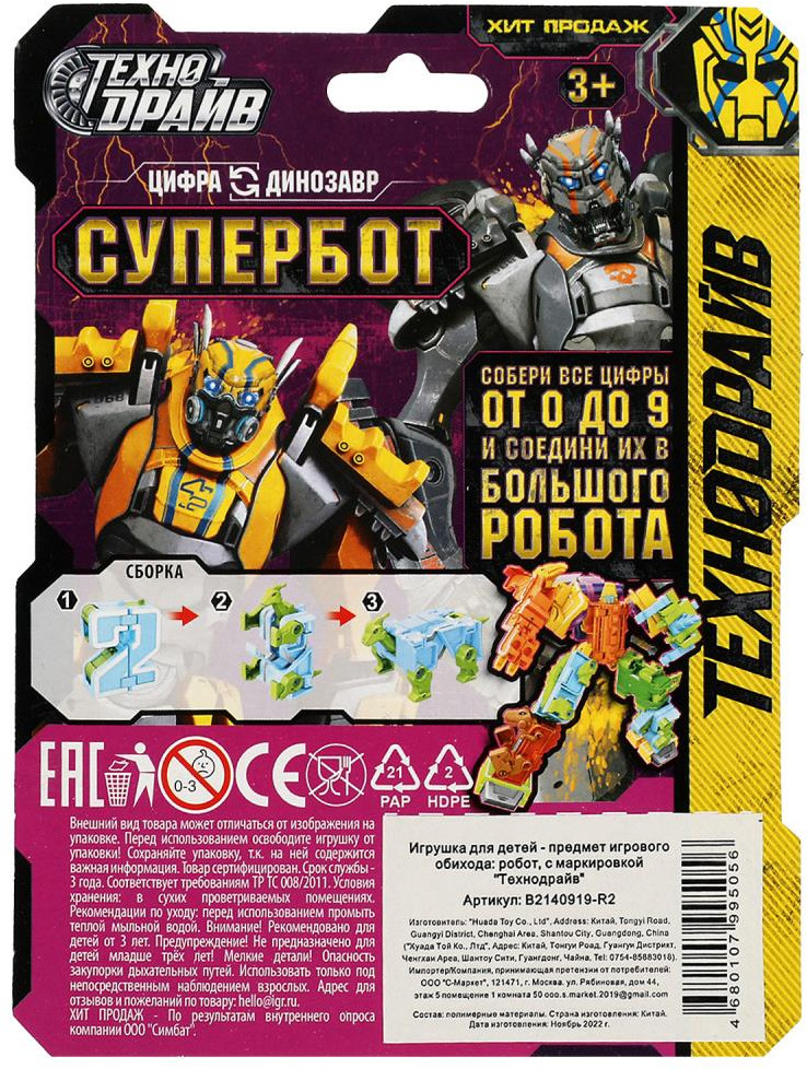 Технодрайв Динозавр-трансформер «Цифра 2»В данный момент этот товар отсутствует в продаже. Возможно, у нас найдется аналогичный или похожий товар здесь. Серия: Супербот Этот яркий робот непременно понравится юному герою. Вместе с ним можно отправиться на спецзадание, спасти мир, стоять на страже правопорядка и придумать еще много сюжетов для занимательных игр. Ребёнок может играть с ним как с роботом, так и знакомиться с основами счёта. Игра с трансформирующимся роботом развивает фантазию, моторику, пространственно-образное мышление, логику, интеллект. |