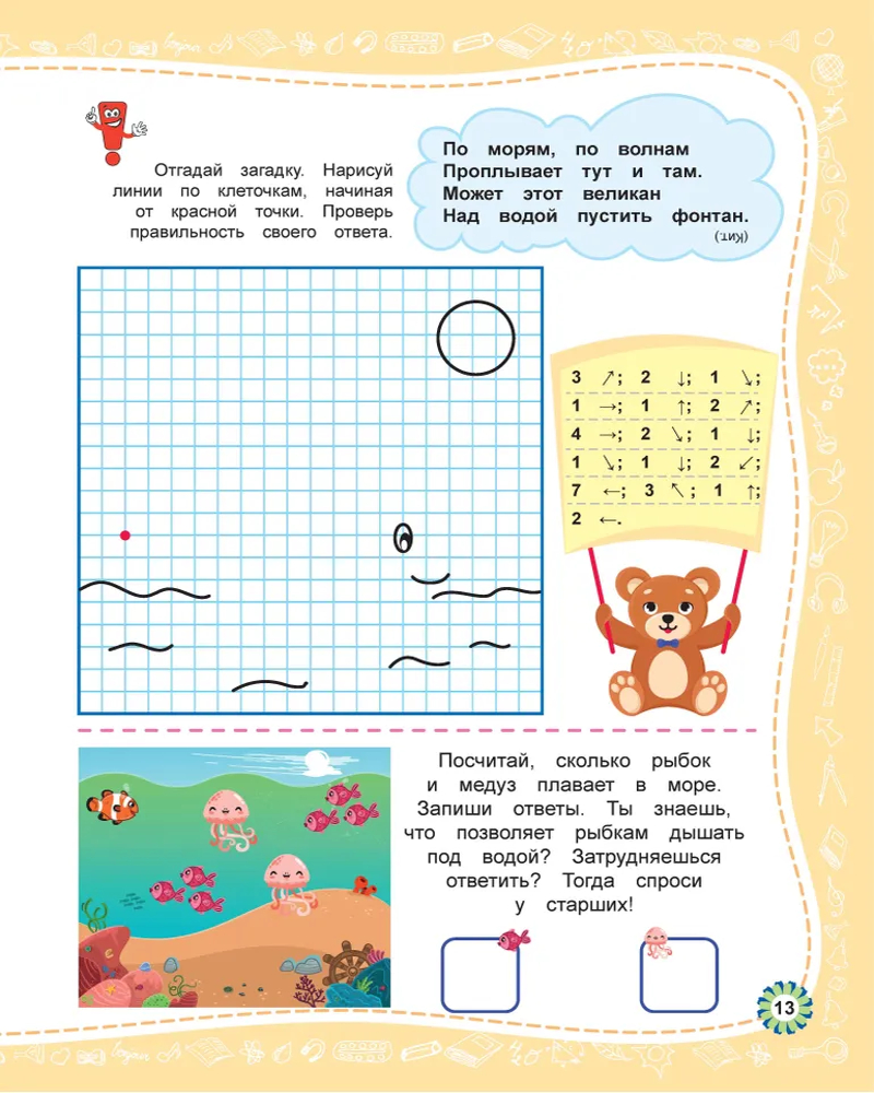 💳 Оплатить за товар можно при получении 🇰🇿 Есть бесплатная доставка по Казахстану от 1 дня 🎁 Копите бонусы с каждой покупки Серия: Графические диктанты Пора готовить кроху к школе, но никак не можете усадить его за скучные прописи? Тогда наша рабочая тетрадь — это то, что вам нужно! С помощью графических диктантов и нескучных заданий ваш малыш освоит элементарные навыки письма, научится ориентироваться на листе бумаги и прокачает навыки счёта. Готовиться к школе можно весело. |