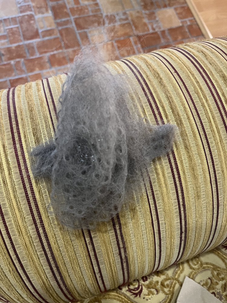 Кот своенравный, кусучий, но выдержал процедуру и даже не наказал меня после нее. После перчатки гонялся, чтобы цапнуть за руку. Шерсти вычесалось больше, чем ожидалось.