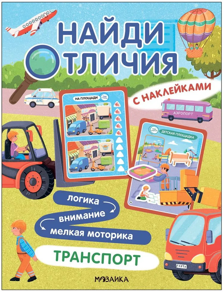 Транспорт. Найди отличияВ данный момент этот товар отсутствует в продаже. Возможно, у нас найдется аналогичный или похожий товар здесь. Серия: Найди отличия Книга «Транспорт» серии «Найди отличия» содержит классические головоломки, где ребенку нужно разглядывать картинки и искать на них отличия. При этом часть картинок с простой механикой, где у каждой пары картинок нужно отметить по 10 отличий. А часть — с наклейками: нужно найти отличия на картинках и сделать их одинаковыми при помощи наклеек. Находить отличия — одно из любимейших занятий детей всех возрастов. А еще — это отличный способ развить внимание, наблюдательность и мелкую моторику. |