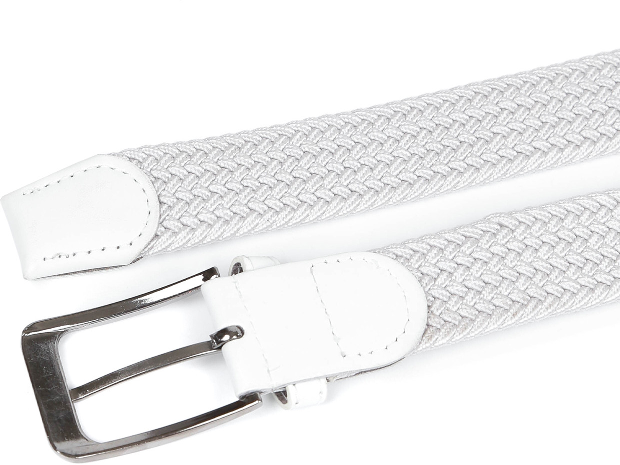 Стильный и удобный текстильный ремень-резинка универсален и подойдет как мужчинам, так и женщинам. Модель выполнена в базовом жемчужно-белом оттенке, который прекрасно дополнит образы в стиле casual. Геометрическое плетение «косичка» и добавление стрейчевой нити делают аксессуар подходящим любому типу фигуры. Он приятен на ощупь, неприхотлив в уходе. Для отделки использована популярная в этом сезоне экокожа в тон изделию. Прямоугольная пряжка с покрытием никель надолго сохранит свой вид и фактуру.
