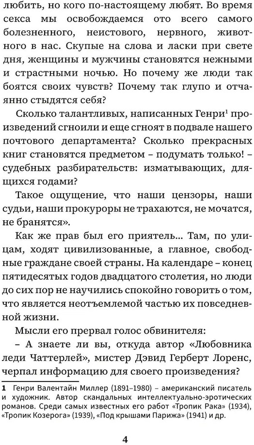 💳 Оплатить за товар можно при получении 🇰🇿 Есть бесплатная доставка по Казахстану от 1 дня 🎁 Копите бонусы с каждой покупки «Любовник леди Чаттерлей» — книга, за чтение которой в начале тридцатых годов прошлого столетия можно было угодить в тюрьму. Роман изымали из продажи и уничтожали его.«Эммануэль» — фильм, которому было отказано в прокате по причине его непристойности.Дэвид Лоренс и Сильвия Кристель, писатель и актриса... Разминувшиеся во времени, оба они преступили границы дозволенного и вышли к публике нагими, оба подверглись осуждению и преследованию со стороны цензоров и власть предержащих... |