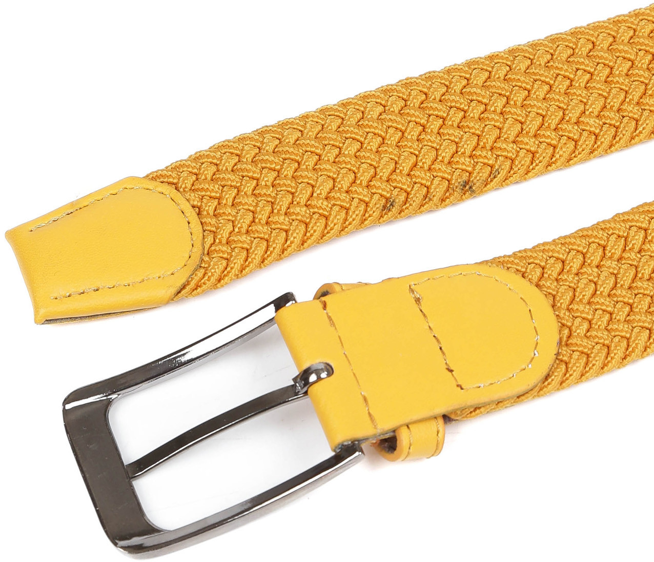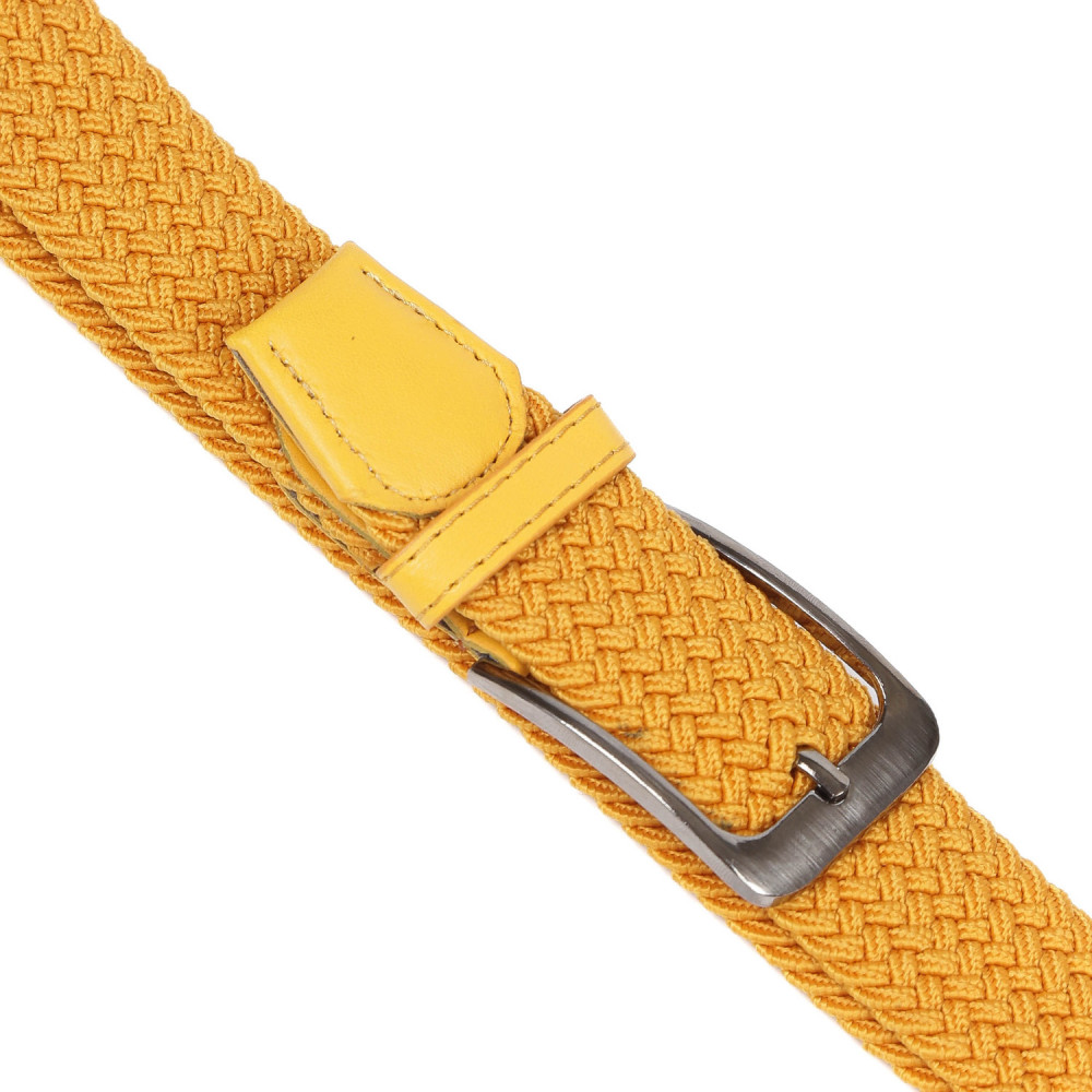 Яркий удобный ремень-резинка универсален и подойдет как мужчинам, так и женщинам. Модель выполнена в насыщенном оранжевом оттенке, который прекрасно дополнит образы в стиле casual. Геометрическое плетение и добавление стрейчевой нити делают аксессуар подходящим любому типу фигуры. Он приятен на ощупь, неприхотлив в уходе. Для отделки использована экокожа в тон изделию. Прямоугольная пряжка с покрытием никель надолго сохранит свой вид и фактуру.