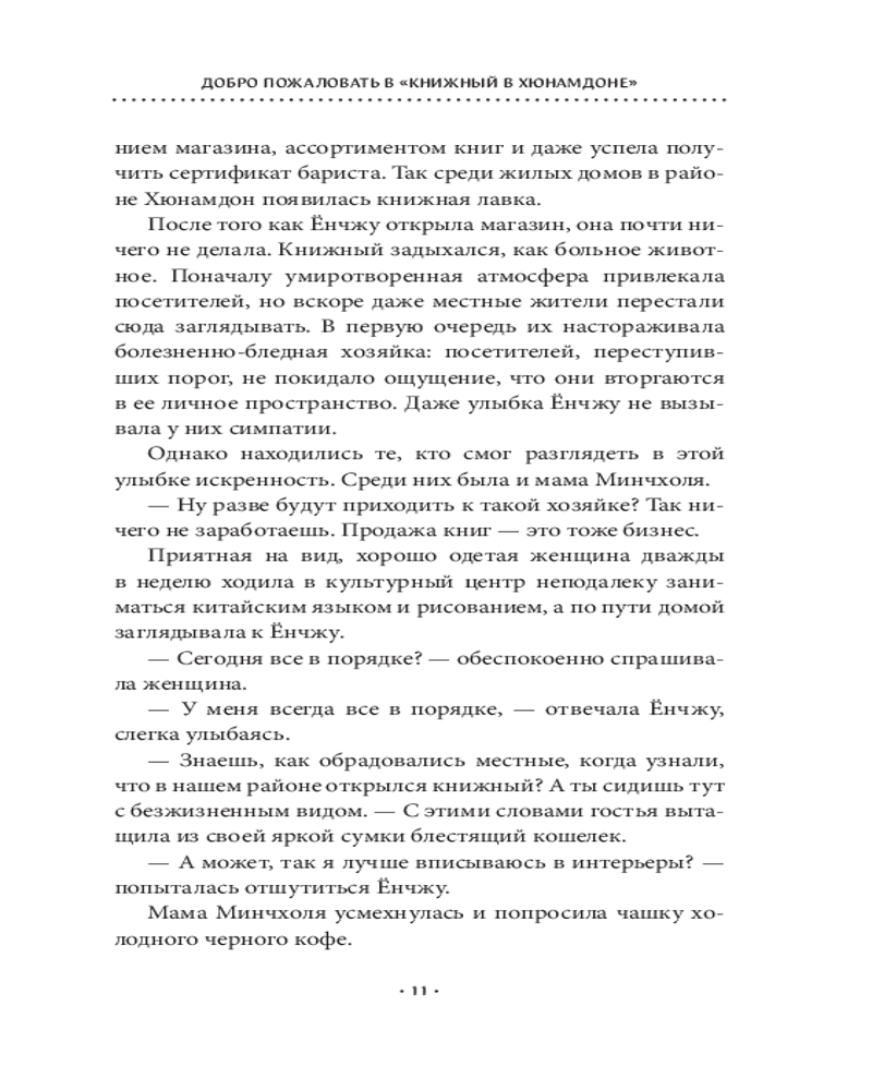 Серия: Хиты Кореи Ёнчжу верит, что в книгах сокрыта невероятная сила, ведь каждая прочитанная история не просто остается в памяти — она пускает корни в нашей душе. Решив жить не ради счастья в туманном будущем, а ощущая себя счастливой каждый день, Ёнчжу отказывается от прежней жизни и, следуя за своей детской мечтой, открывает книжный магазин. Незаметно ее начинает увлекать новое дело, и тихий уголок мало-помалу привлекает людей, у которых непростые жизненные истории. Среди новых знакомых и бариста Минчжун. Вкусом своего кофе он хочет разогреть атмосферу книжного магазина, а ароматом — оставить теплое воспоминание в сердцах посетителей. Добро пожаловать в мир мечты, кофе и книг! |