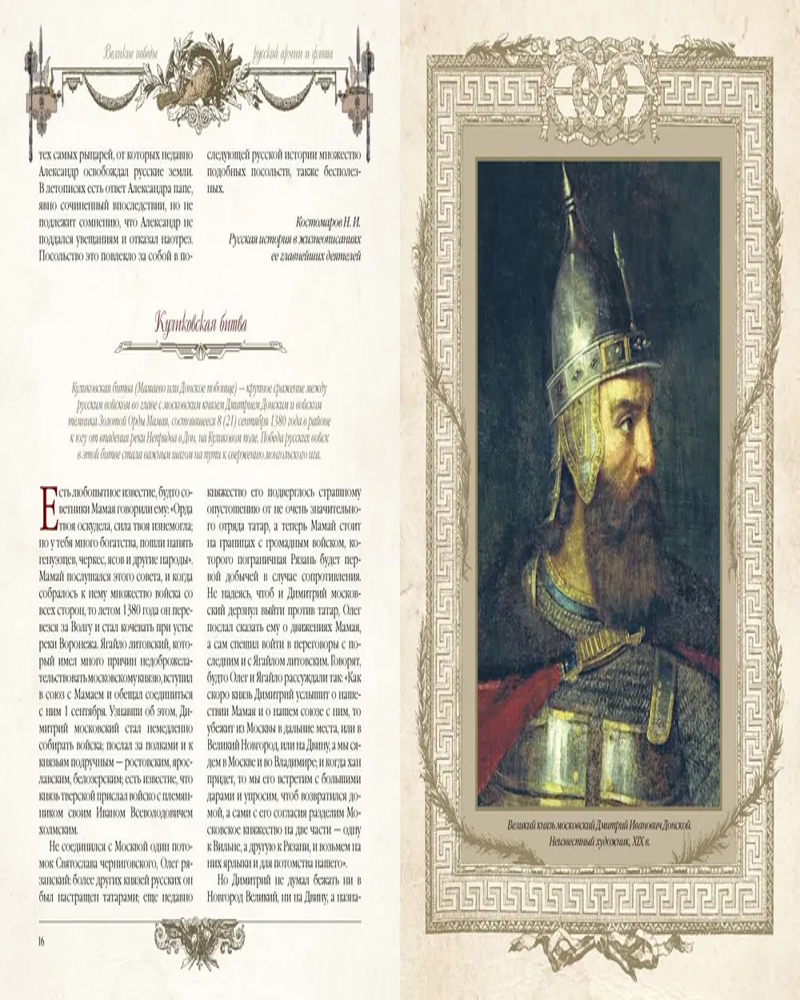 Великие победы русской армии и флотаВ данный момент этот товар отсутствует в продаже. Возможно, у нас найдется аналогичный или похожий товар здесь. Серия: История России Эта книга расскажет вам о всех величайших сражениях и победах русской армии и флота со времен Александра Невского до середины XX века, каждая из которых изменила ход не только российской, но и мировой истории. Все эти баталии были неоднократно описаны, однако впервые мы собрали, свели воедино и согласовали фактический материал из книг великих русских историков, воспоминаний военных, а также статистические данные, до этого рассыпанные по десяткам исторических трудов. У каждой победы русского оружия были свои творцы: на страницах книги перед вами предстанут жизнь и судьба полководцев, адмиралов, офицеров и солдат, чьи беспримерные подвиги, благородство и героизм навеки записаны в нашей памяти. |