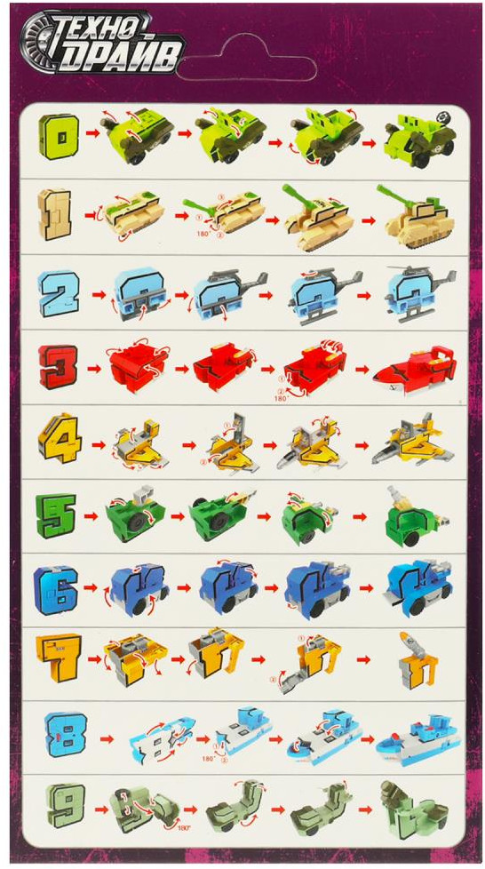 Технодрайв Робот-трансформер «Цифра 2»В данный момент этот товар отсутствует в продаже. Возможно, у нас найдется аналогичный или похожий товар здесь. Серия: Супербот Этот яркий робот непременно понравится юному герою. Вместе с ним можно отправиться на спецзадание, спасти мир, стоять на страже правопорядка и придумать еще много сюжетов для занимательных игр. Ребёнок может играть с ним как с роботом, так и знакомиться с основами счёта. Игра с трансформирующимся роботом «Технодрайв» развивает: фантазию, моторику, пространственно-образное мышление, логику, интеллект. Трансформирующийся робот «Супербот» станет отличным подарком для ребёнка. |