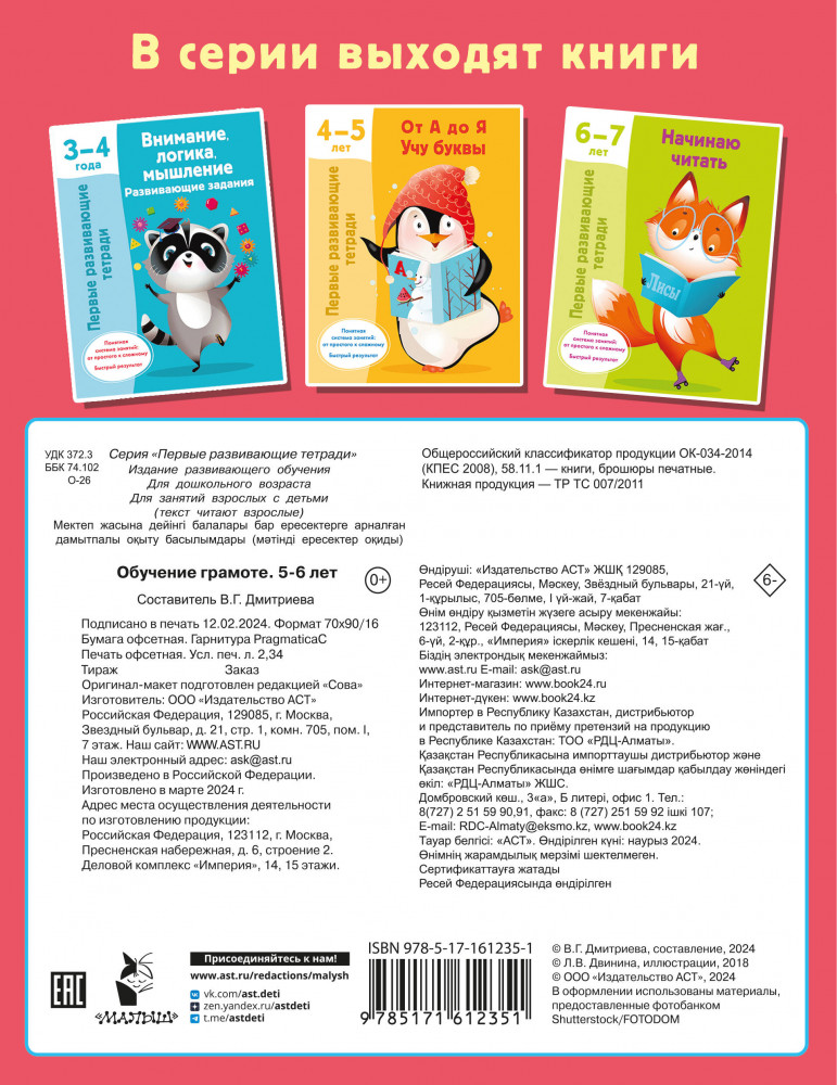 Обучение грамоте. 5-6 летВалентина Геннадьевна Дмитриева