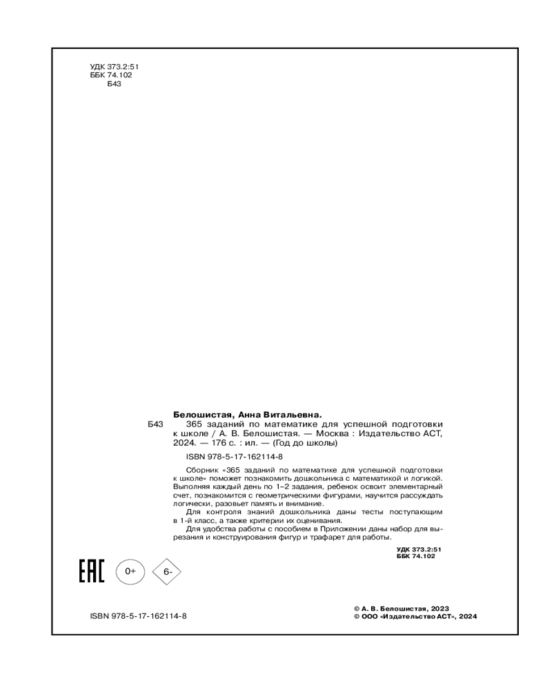 365 заданий по математике для успешной подготовки к школе+114