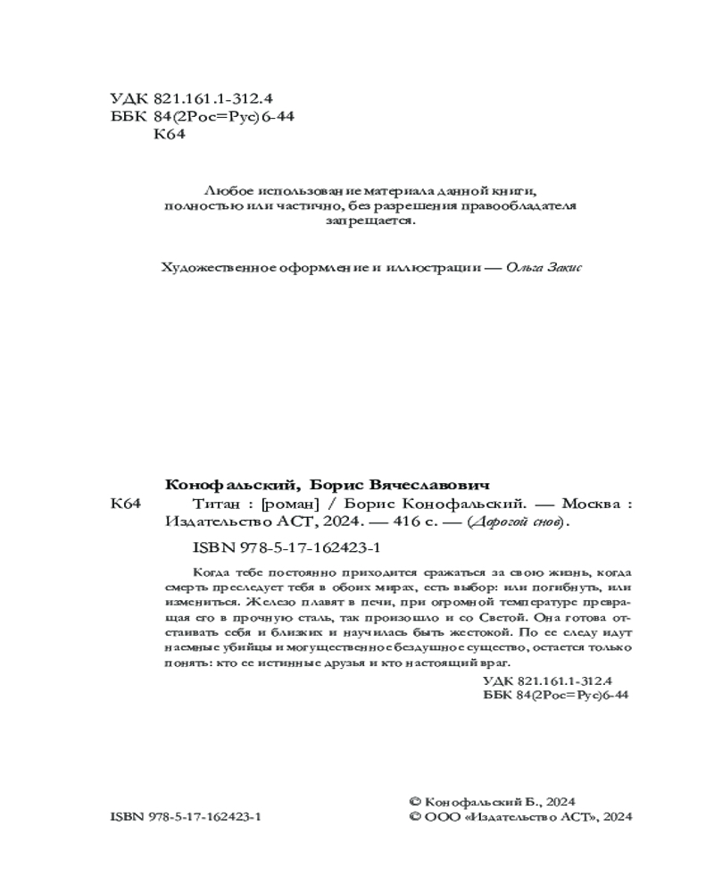 💳 Оплатить за товар можно при получении 🇰🇿 Есть бесплатная доставка по Казахстану 🎁 Копите бонусы с каждой покупки Серия: Дорогой снов Когда тебе постоянно приходится сражаться за свою жизнь, когда смерть преследует тебя в обоих мирах, есть выбор: или погибнуть, или измениться. Железо плавят в печи, при огромной температуре превращая его в прочную сталь, так произошло и со Светой. Она готова отстаивать себя и близких и научилась быть жестокой. По ее следу идут наемные убийцы и могущественное бездушное существо, остается только понять: кто ее истинные друзья и кто настоящий враг. |
