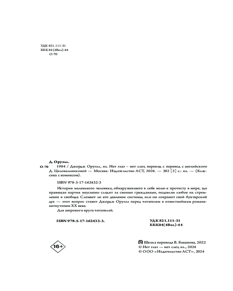 💳 Оплатить за товар можно при получении 🇰🇿 Есть бесплатная доставка по Казахстану от 1 дня 🎁 Копите бонусы с каждой покупки Серия: Классика с комиксом История маленького человека, обнаружившего в себе волю к протесту в мире, где правящая партия неусыпно следит за своими гражданами, подавляя любое их стремление к свободе. Сломает ли его давление системы, или он сохранит свой бунтарский дух — этот вопрос ставит Джордж Оруэлл перед читателем в известнейшем романе-антиутопии XX века. Для широкого круга читателей. |