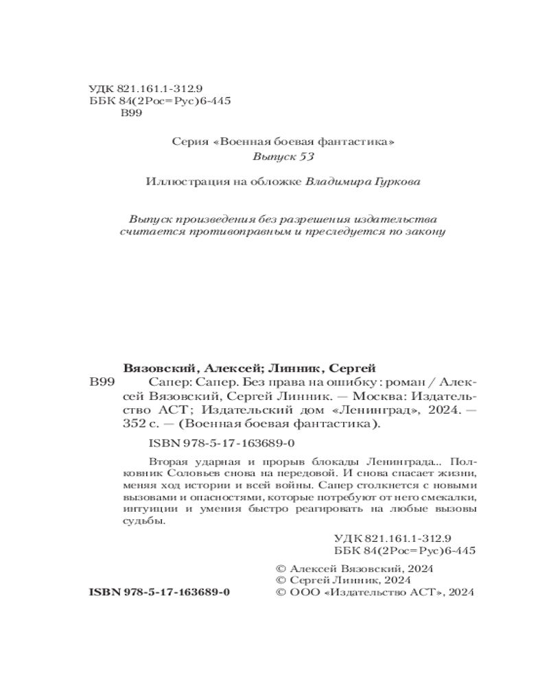 Сапёр. Без права на ошибкуСергей Владимирович Линник, Алексей Викторович Вязовский -60% +54