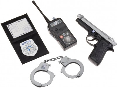 Полицейский набор сделает игру в полицию более реалистичной. В наборе есть пистолет, удостоверение, рация и наручники.