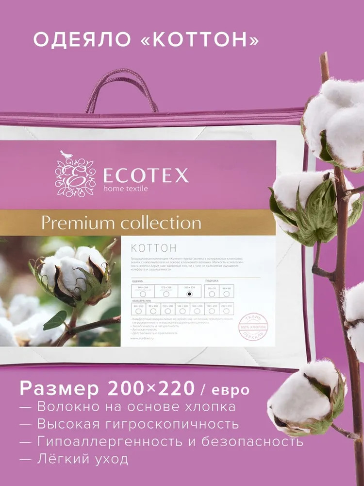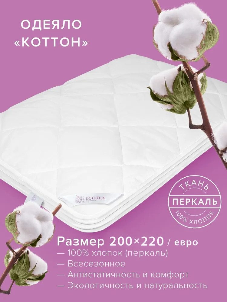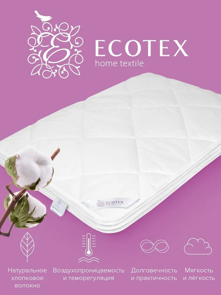 Качественное хлопковое одеяло коллекции «Коттон» — настоящая находка для тех, чья нежная кожа требует особой заботы. Подлинная ценность одеяла — в комфорте, которым оно окружает Вас всю ночь. Мы хотим, чтобы каждую ночь, укрываясь одеялом от Ecotex, Вы получали настоящее удовольствие. Традиционная коллекция одеял «Коттон» представлена в натуральных хлопковых тканях с наполнителем на основе хлопкового волокна. Мягкость и экологичность хлопка дарит нам здоровый сон, ни с чем не сравнимое ощущение комфорта и защищенности.