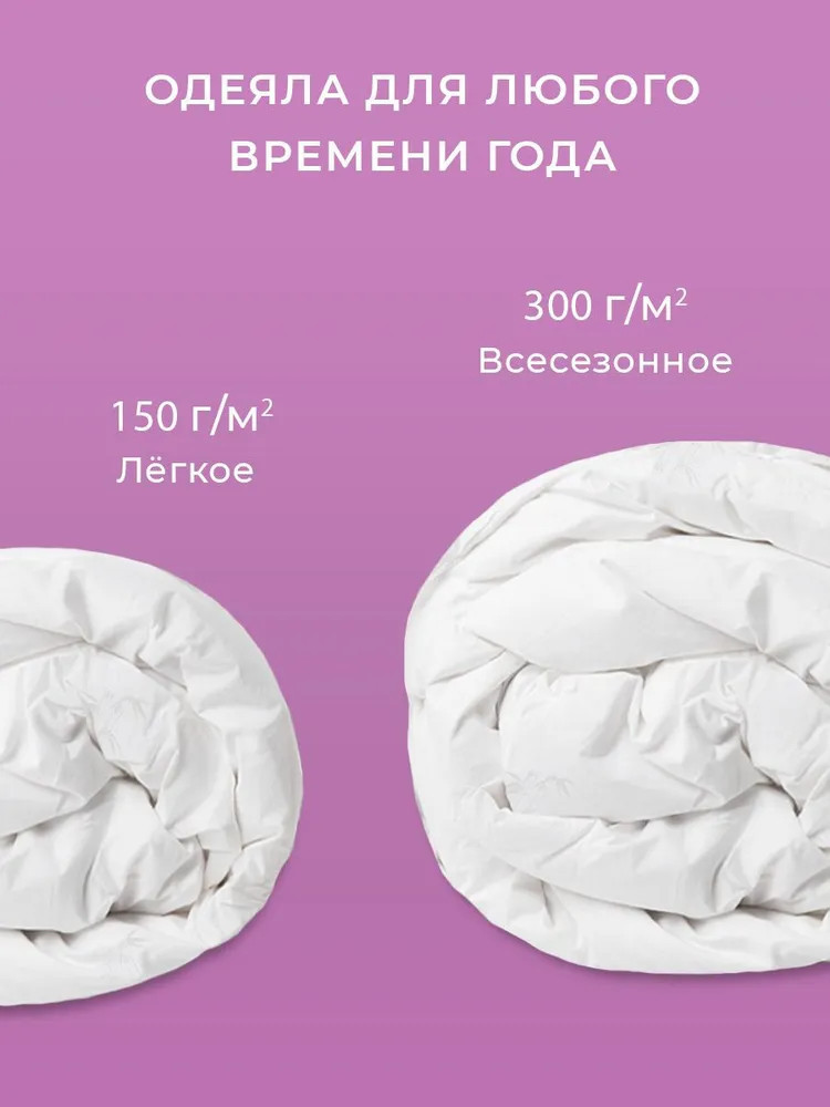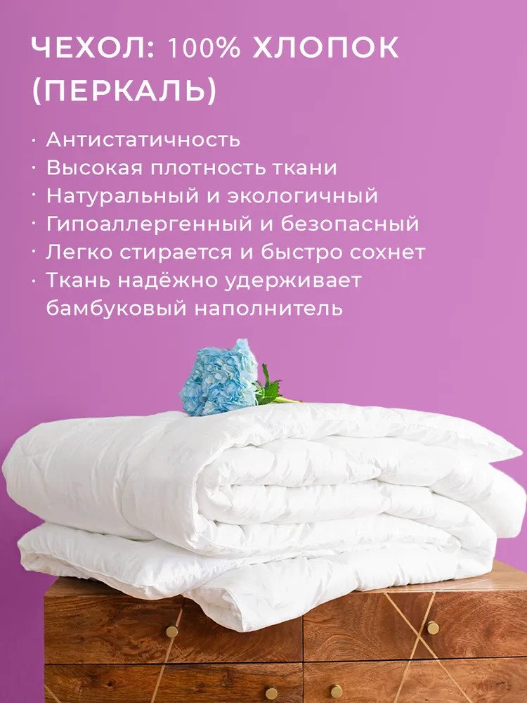 Наше одеяло идеально подходит для любого времени года, благодаря его всесезонной степени тепла. Вы будете ощущать уют и комфорт, как зимой, так и летом. Это одеяло станет вашим надежным спутником во всех условиях. Позвольте себе расслабиться, отдохнуть и насладиться моментом, обернувшись этим исключительным одеялом. Уверенность в качестве и максимальный комфорт — вот что вы получите, приобретая наше одеяло на основе бамбука.