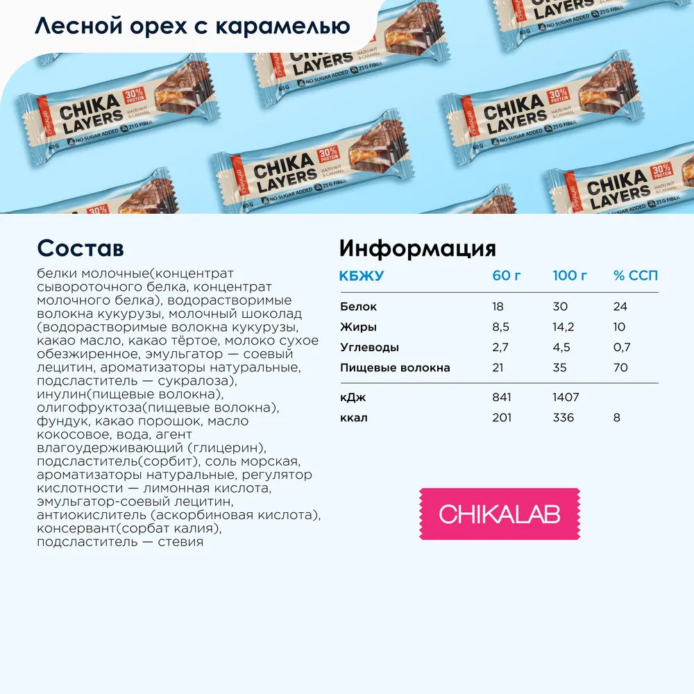 Chikalab Набор батончиков в шоколаде «Лесной орех с карамелью»