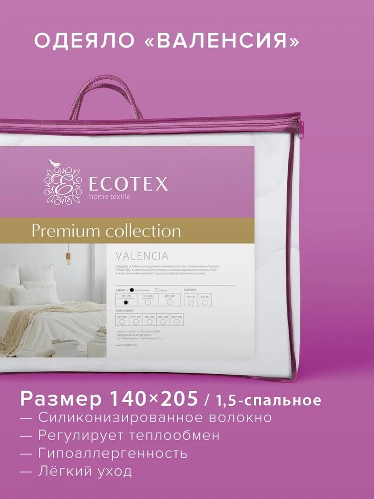 Находитесь в поиске одеяла, которое можно стирать и под которым не жарко спать? Тогда популярная коллекция одеял «Валенсия» с наполнителем из полого силиконизированного волокна Fiber в ткани поликоттон создана для вас. Под ними комфортно спать как зимой, так и в теплое время года; модели мягкие и легкие. Изделия этой коллекции позволяют наполнить каждый дом теплом и окунуться в атмосферу комфорта.