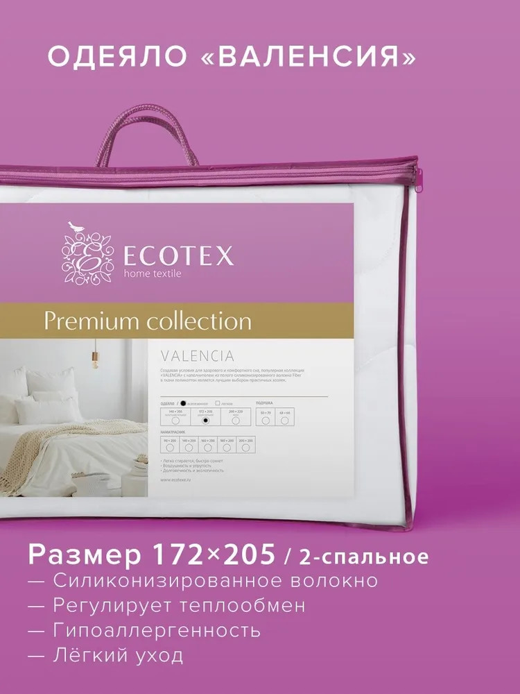 Находитесь в поиске одеяла, которое можно стирать и под которым не жарко спать? Тогда популярная коллекция одеял «Валенсия» с наполнителем из полого силиконизированного волокна Fiber в ткани поликоттон создана для вас. Под ними комфортно спать как зимой, так и в теплое время года; модели мягкие и легкие. Изделия этой коллекции позволяют наполнить каждый дом теплом и окунуться в атмосферу комфорта.