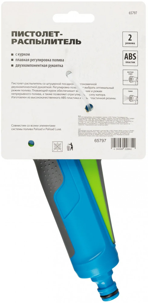 💳 Оплатить за товар можно при получении 🇰🇿 Есть бесплатная доставка по Казахстану от 1 дня 🎁 Копите бонусы с каждой покупки Пистолет-распылитель Palisad LUXE с курком и регулируемой форсункой обеспечивает подачу жесткой струи воды, конусное распыление и работу в режиме «туман», поэтому позволяет быстро поливать большие участки. Также с его помощью можно очистить дорожки, промыть садовый инвентарь и выполнить другие работы на загородном участке. Пистолет пригодится дачникам и работникам коммунальных служб. |