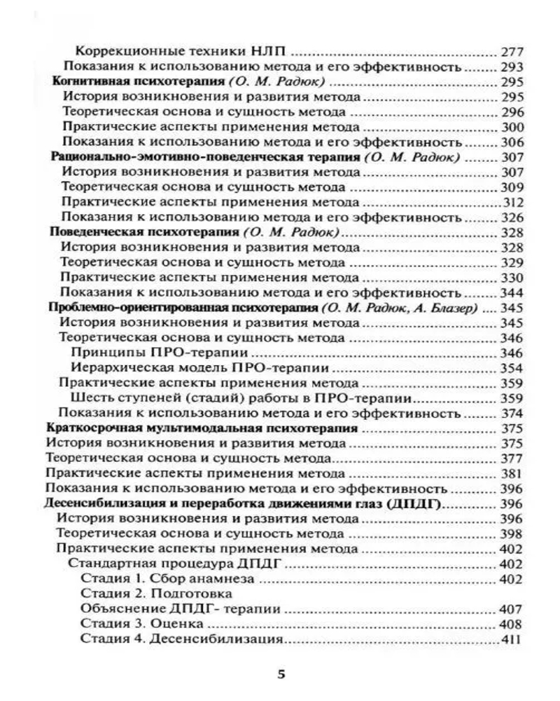 Краткосрочные методы психотерапии: практическое руководствоВ данный момент этот товар отсутствует в продаже. Возможно, у нас найдется аналогичный или похожий товар здесь. Серия: Золотой фонд психотерапии В книге с современных позиций рассматриваются наиболее широко используемые в мире краткосрочные методы психотерапии. В их числе эриксоновская психотерапия и эриксоновский гипноз, краткосрочная стратегическая психотерапия, позитивная психотерапия, десенсибилизация и переработка движениями глаз, рационально-эмотивно-поведенческая психотерапия, когнитивная терапия, поведенческая терапия. Главы, в которых рассмотрены вышеперечисленные методы, существенно расширены и дополнены, по сравнению с 1-м изданием книги. Включена новая глава, посвященная проблемно-ориентированной терапии. Краткосрочные методы психотерапии отличаются терапевтическим прагматизмом, экономичностью и быстротой достижения терапевтического эффекта. Последнее обстоятельство делает весьма актуальным широкое внедрение данных методов в практику работы специалистов в области охраны психического здоровья. Книга предназначена для врачей-психотерапевтов, психиатров, клинических психологов, социальных работников, студентов медицинских вузов и психологических факультетов. |
