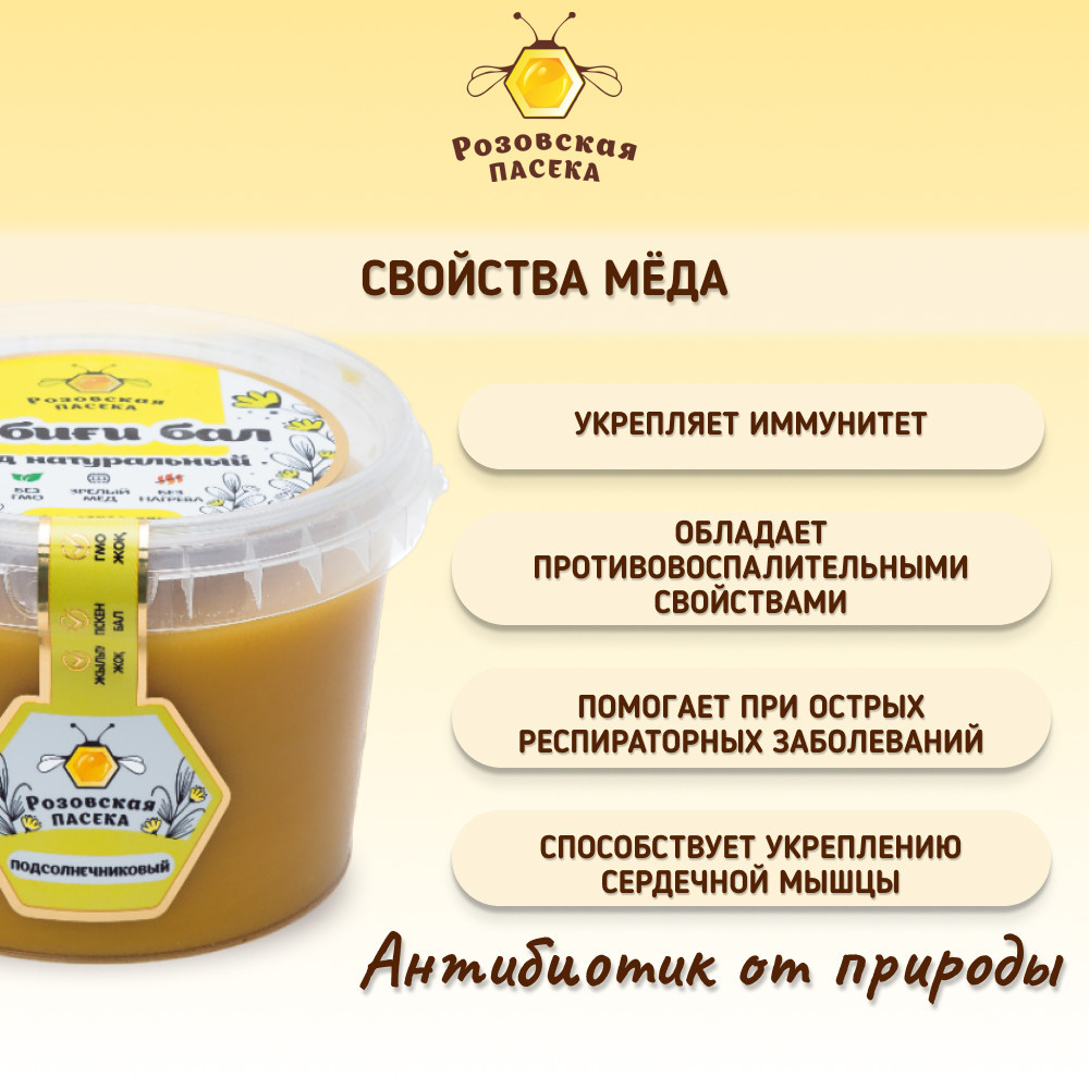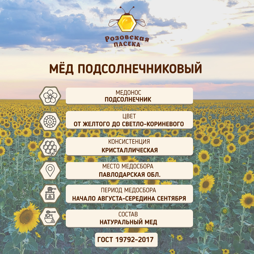 Розовская пасека Мед натуральный «Подсолнечниковый»